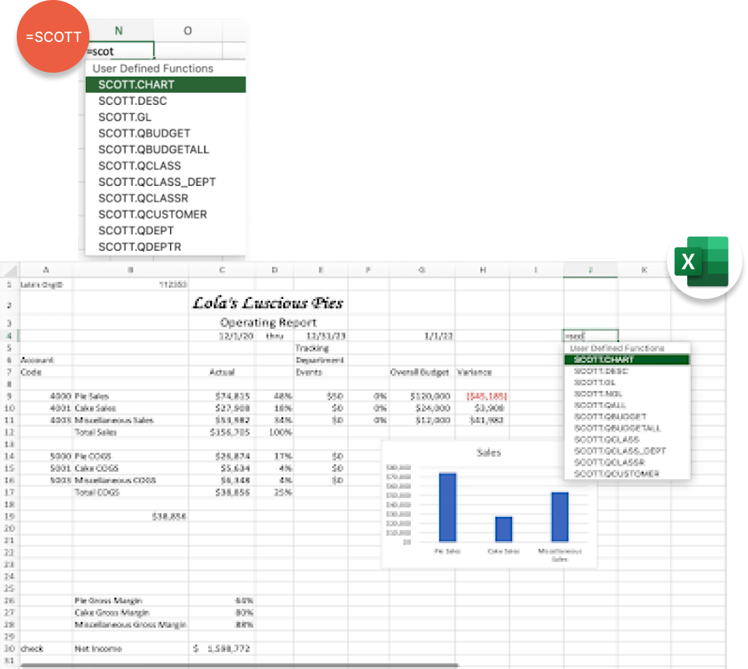 - Custom functions for simple, flexible, and fast report building (with only basic Excel experience needed)