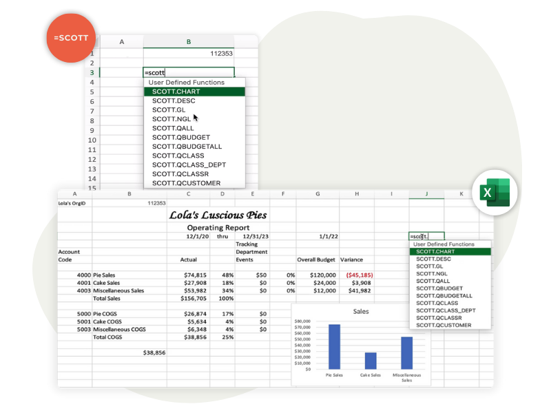 Scott’s makes it easy to sync live general ledger data to Excel without error-prone and time-consuming manual imports.